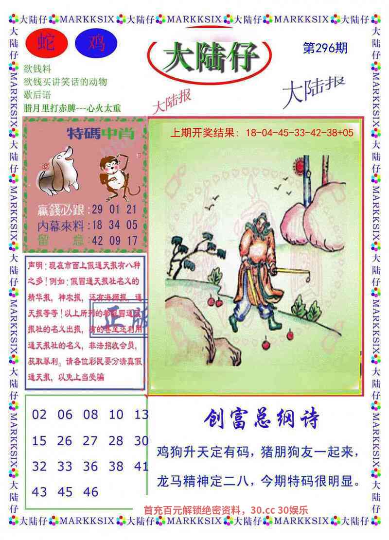 | 296期必杀二肖〖羊鼠〗开:猴22准 |